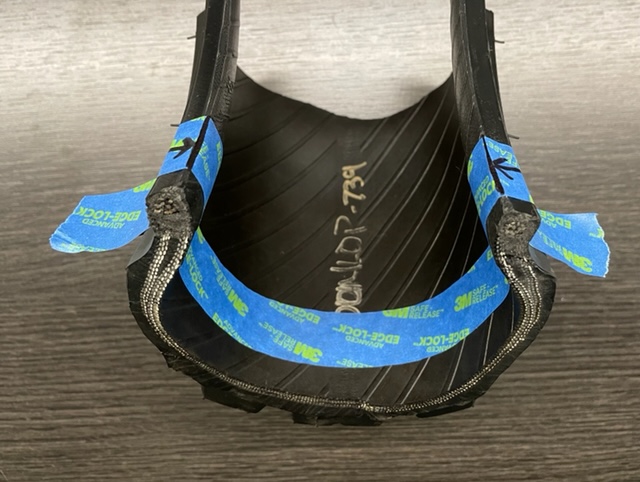 Make sure the tape is making full contact with the inside surface of the tire, and then mark the tape at the INSIDE corners of the beads (per the picture below).